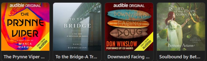 Downward Facing Doug by Don Winslow #Thriller #Surfers #Humor [completed #82] I’m not sure that Don Winslow is capable of writing a bad story. He defies categorization, and there is always something interesting and unique about the story. I did not see the end of this one coming. Free with the Plus catalog on Audible.